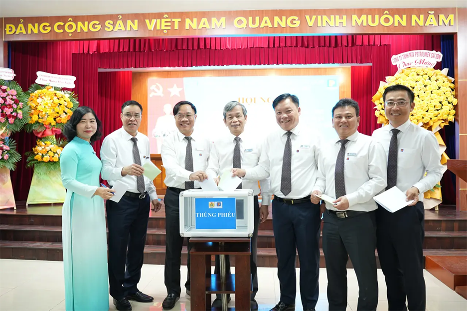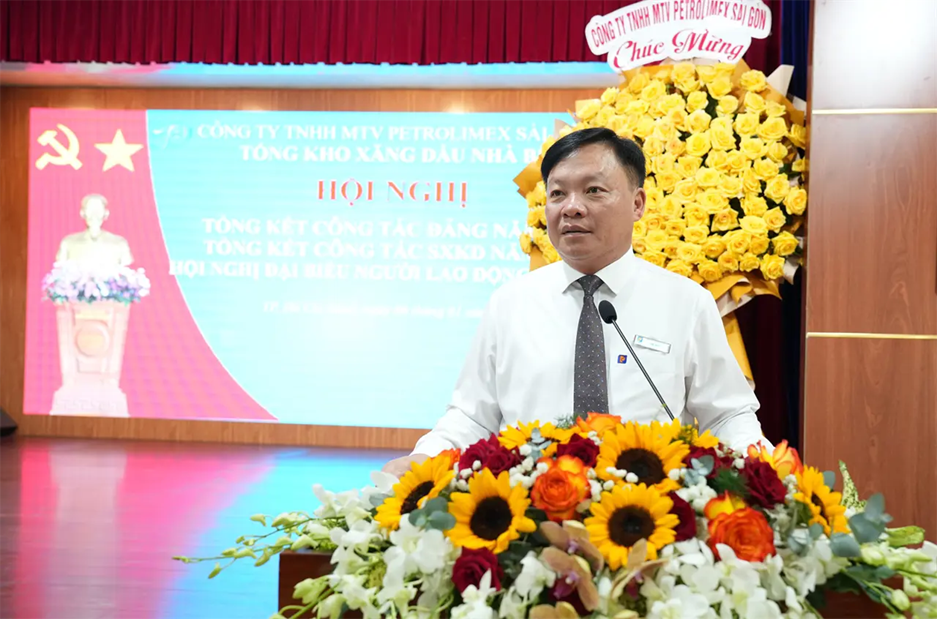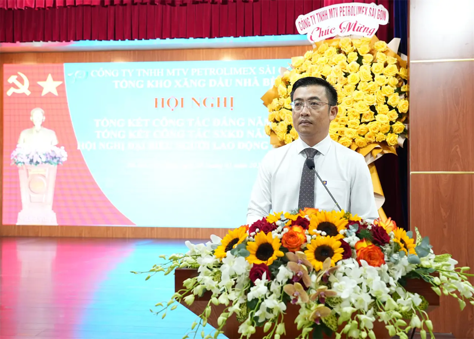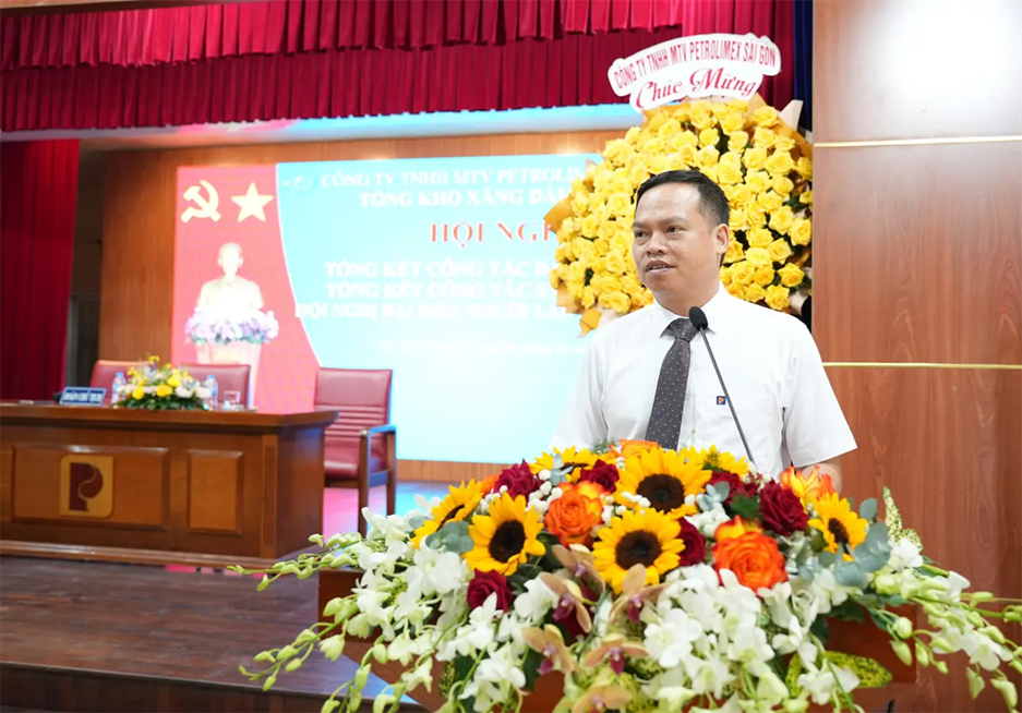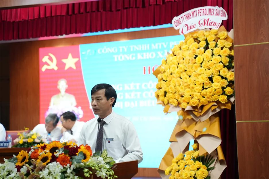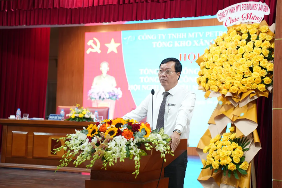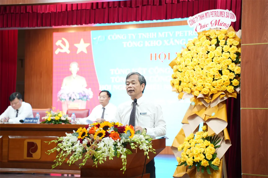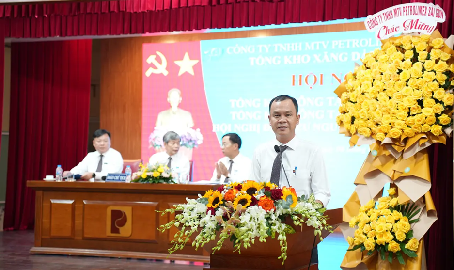 Attending and directing the Conference were Mr. Vo Van Tan – Secretary of the Party Committee and Chairman of Petrolimex Saigon; Mr. Pham Anh Tuan – Deputy Secretary of the Party Committee and Director of Petrolimex Saigon; Mr. Tran Dinh Tuyet – Deputy Director and Chairman of the Trade Union of Petrolimex Saigon, together with representatives of the Board of Directors, leaders of departments/divisions/centers, and leaders of Petrolimex Vung Tau Branch and Petrolimex Binh Duong Branch under the Company.