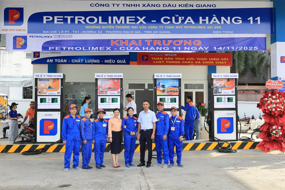 On the morning of November 14, 2025, Kien Giang Petroleum Company Ltd. (Petrolimex Kien Giang) held the grand opening ceremony and officially put into operation Petrolimex – Station No. 11, located at Lot P1-TX, 3 Thang 2 Street, Rach Gia Ward, An Giang Province.