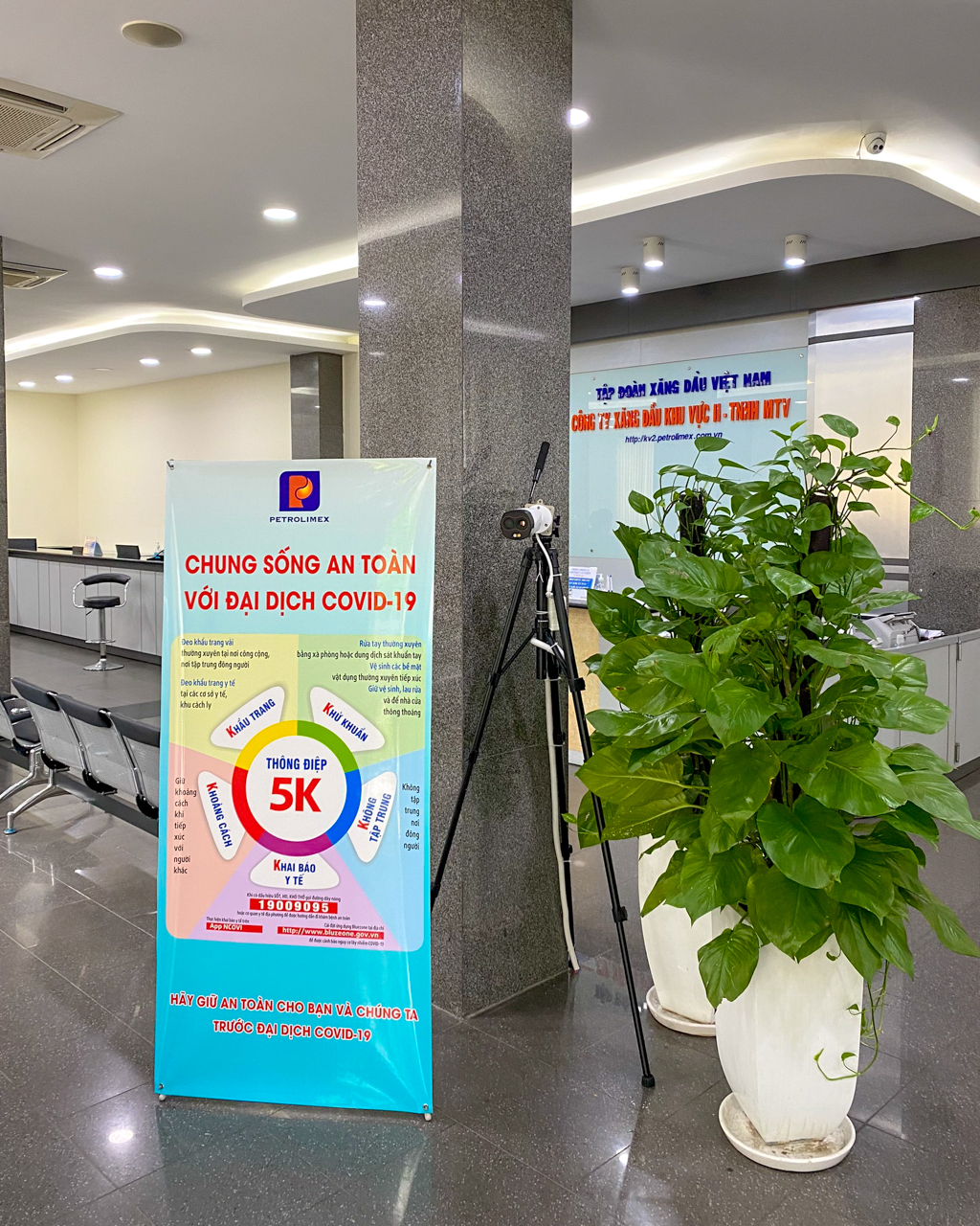 Automatic body temperature cameras are equipped at the main and auxiliary gates of Petrolimex Saigon Headquarters