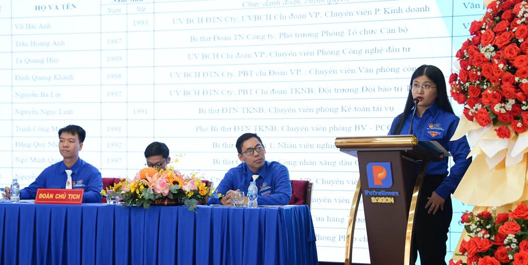 At the Congress, the new Executive Committee for the 2025–2030 term was elected, including 11 members: Mr. Tran Hoang Anh, Member of the Company’s Party Executive Committee and Deputy Head of the Organization Department, was re-elected as Secretary; Ms. Nguyen Ngoc Linh, Secretary of the Youth Branch of Nha Be Petroleum Terminal, and Ms. Do Hong Hoai Trinh, Secretary of the Company Office Youth Branch, were elected as Deputy Secretaries.