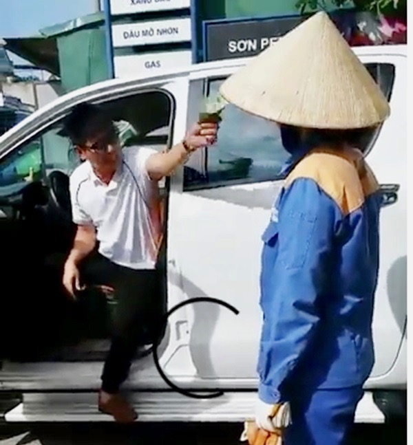 Anh H tới mua dầu và cho rằng cửa hàng gian lận bơm thiếu hàng, không trả tiền mua hàng (ảnh cắt ra từ clip được đăng tải trên mạng xã hội)