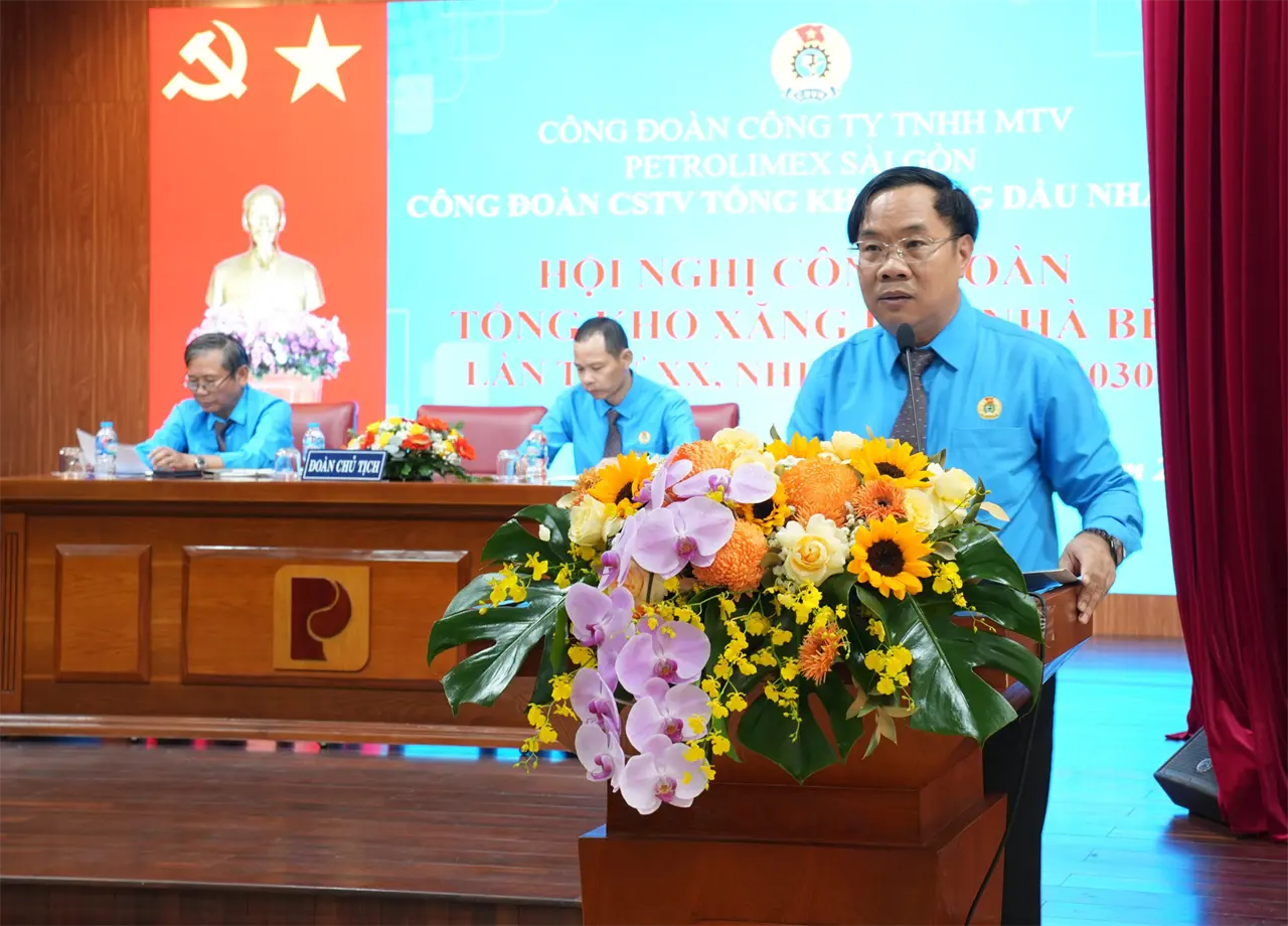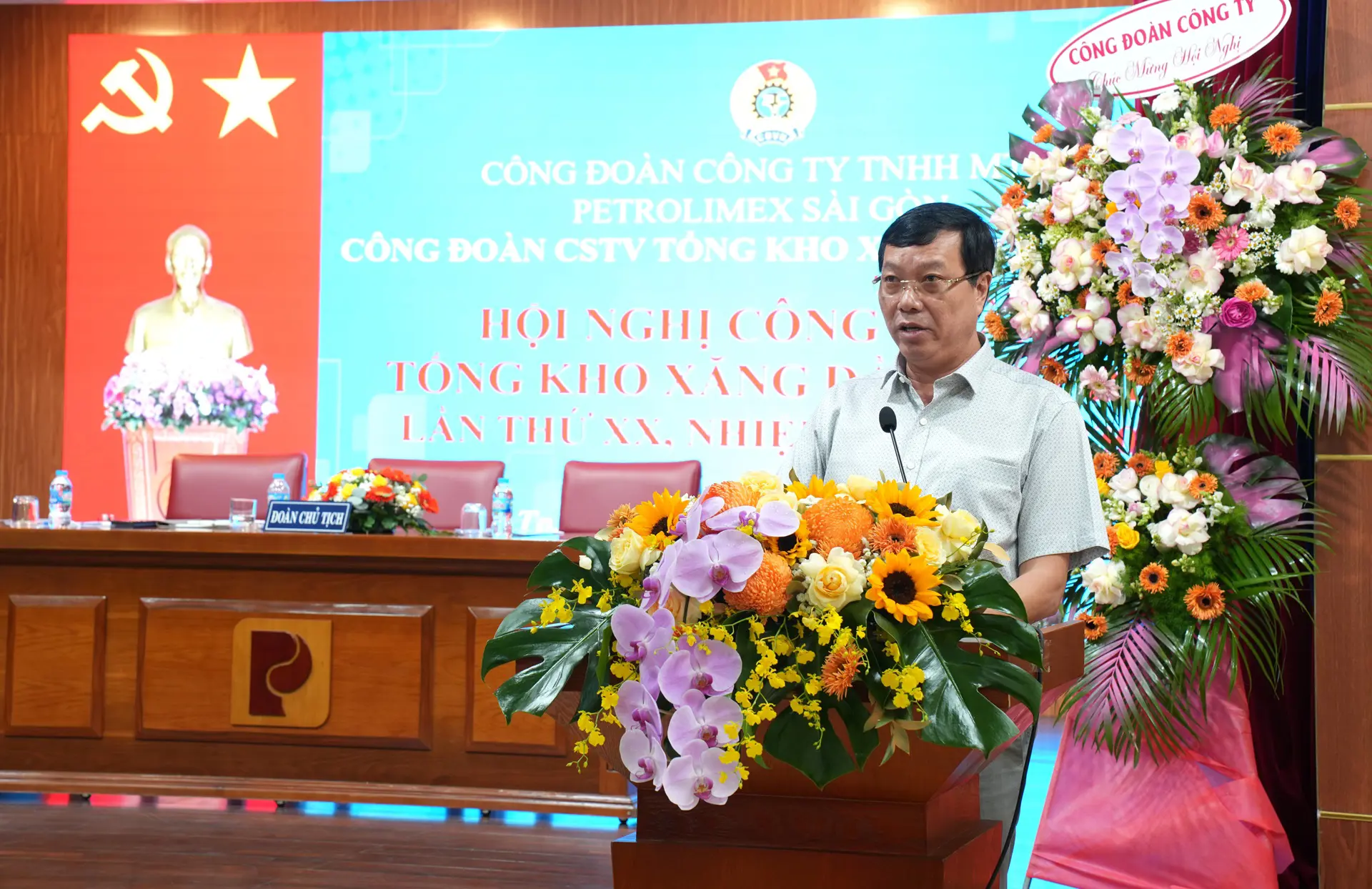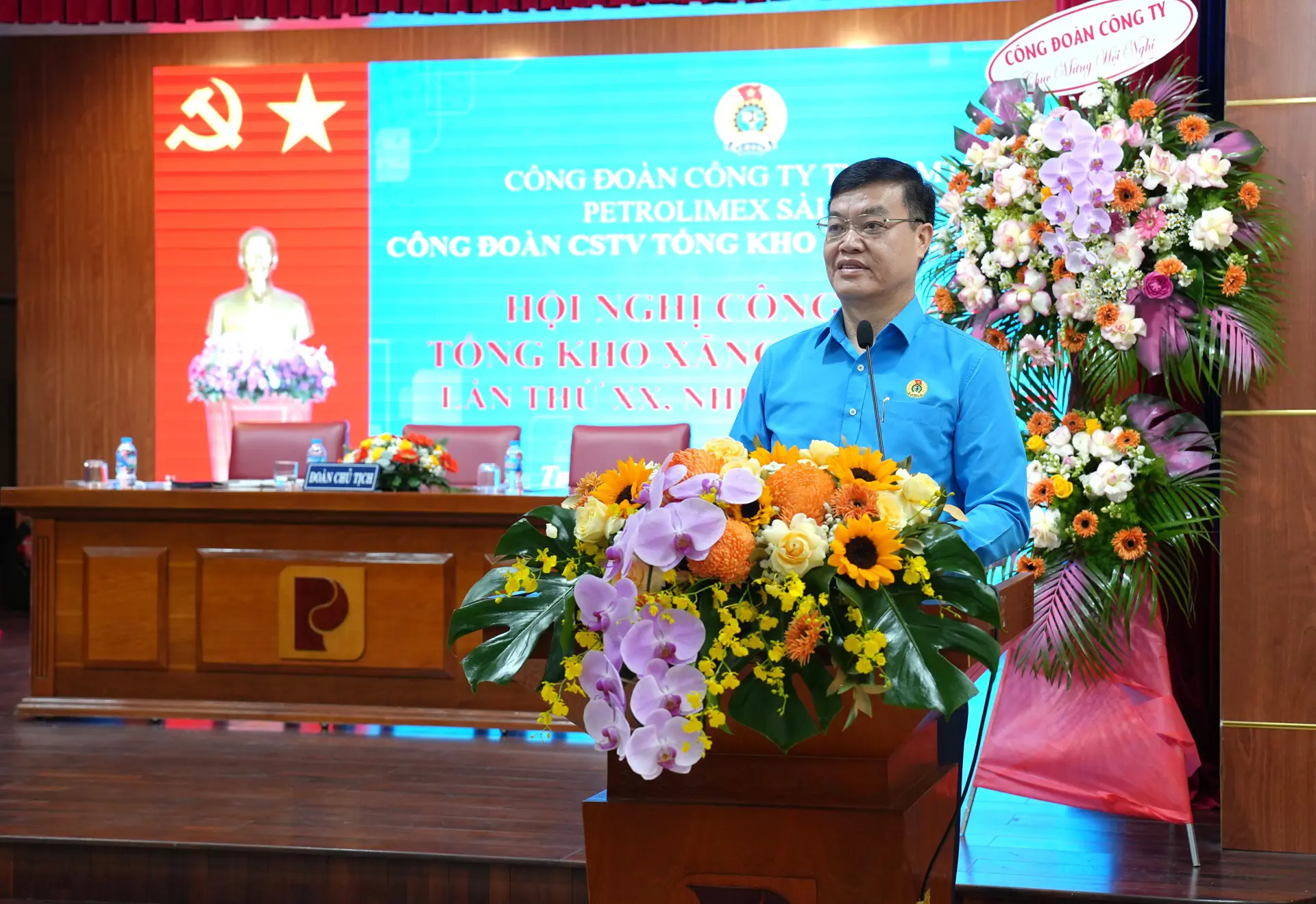 Phát biểu chỉ đạo Hội nghị, Bí thư Đảng ủy - Chủ tịch Petrolimex Sài Gòn Võ Văn Tân đánh giá cao công tác chuẩn bị và tổ chức Hội nghị, biểu dương những thành tích và ghi nhận những thành quả mà Công đoàn CSTV Tổng kho đạt được trong nhiệm kỳ 2023 - 2025 vừa qua. Đồng thời, nhấn mạnh vai trò nòng cốt của tổ chức Công đoàn trong việc đồng hành cùng Chính quyền trong sự phát triển chung của toàn đơn vị. Cùng với đó, đồng chí cũng đề nghị Công đoàn CSTV Tổng kho tiếp tục phát huy những thành tích đã đạt được, chăm lo, bố trí đúng, đủ, hợp lý việc làm cho CBCNV-NLĐ, đặc biệt quan tâm, động viên, tìm hiểu hoàn cảnh, tư tưởng đoàn viên, người lao động, từ đó giúp họ yên tâm công tác. Tập trung xây dựng hình ảnh tốt đẹp của tổ chức Công đoàn, xứng đáng với sự tin tưởng, tín nhiệm, đồng hành của người lao động.