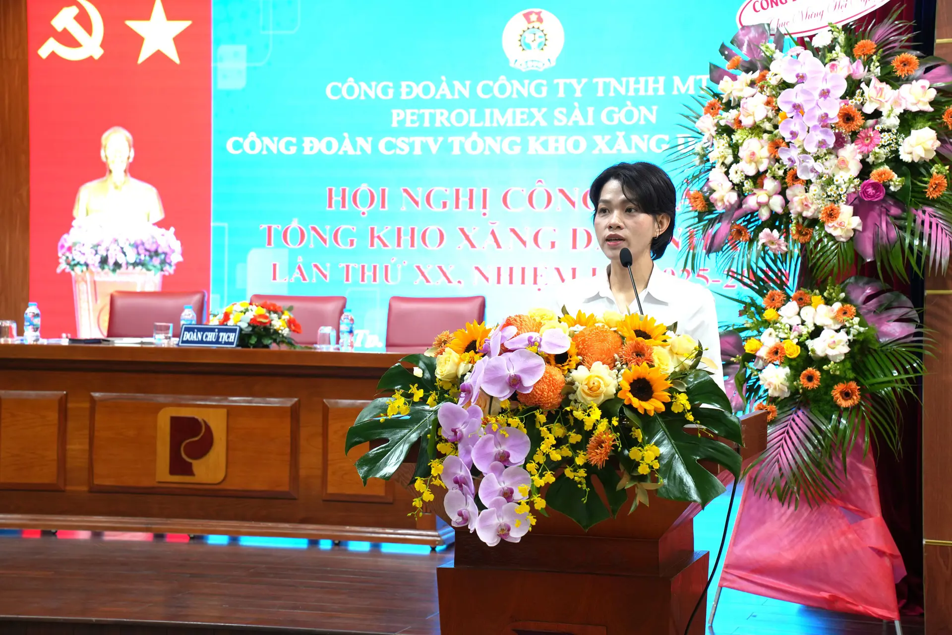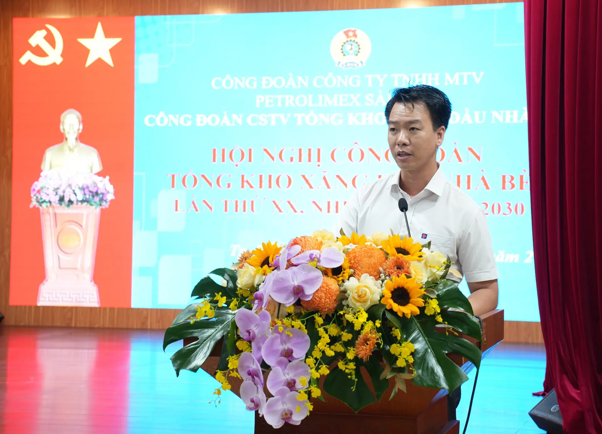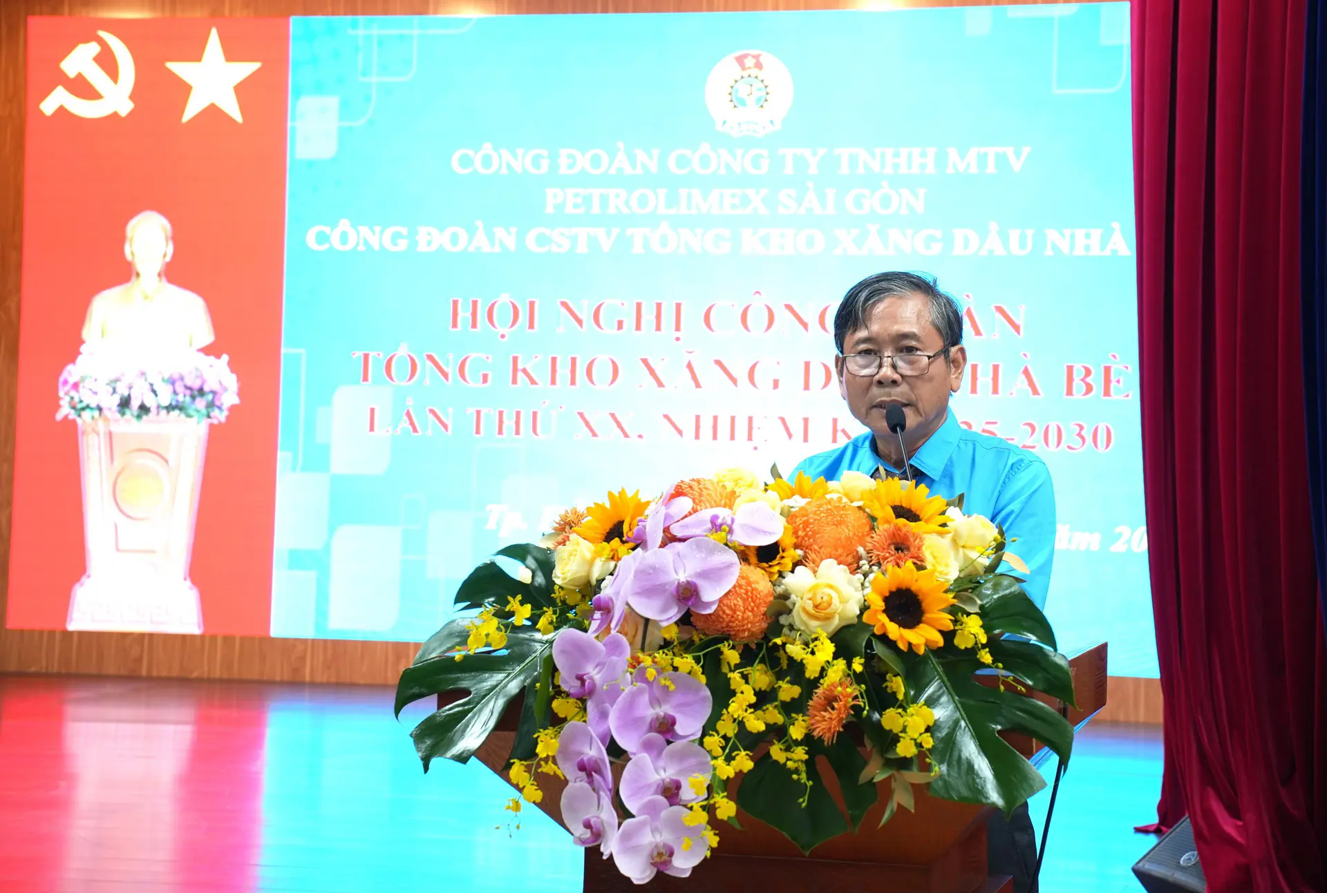 Phát biểu chỉ đạo Hội nghị, Bí thư Đảng ủy - Chủ tịch Petrolimex Sài Gòn Võ Văn Tân đánh giá cao công tác chuẩn bị và tổ chức Hội nghị, biểu dương những thành tích và ghi nhận những thành quả mà Công đoàn CSTV Tổng kho đạt được trong nhiệm kỳ 2023 - 2025 vừa qua. Đồng thời, nhấn mạnh vai trò nòng cốt của tổ chức Công đoàn trong việc đồng hành cùng Chính quyền trong sự phát triển chung của toàn đơn vị. Cùng với đó, đồng chí cũng đề nghị Công đoàn CSTV Tổng kho tiếp tục phát huy những thành tích đã đạt được, chăm lo, bố trí đúng, đủ, hợp lý việc làm cho CBCNV-NLĐ, đặc biệt quan tâm, động viên, tìm hiểu hoàn cảnh, tư tưởng đoàn viên, người lao động, từ đó giúp họ yên tâm công tác. Tập trung xây dựng hình ảnh tốt đẹp của tổ chức Công đoàn, xứng đáng với sự tin tưởng, tín nhiệm, đồng hành của người lao động.