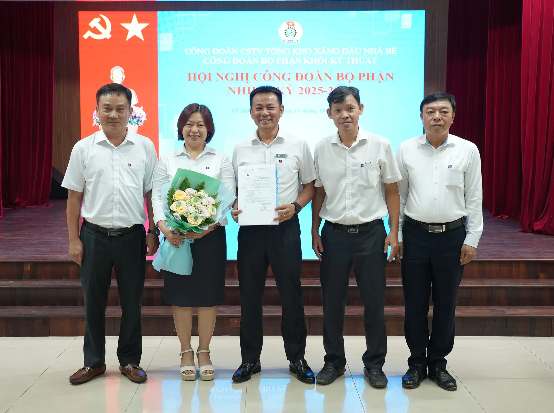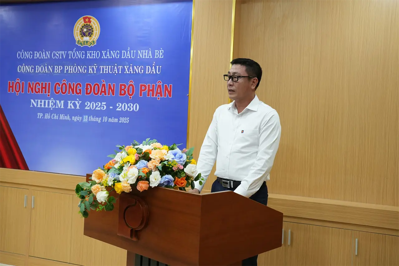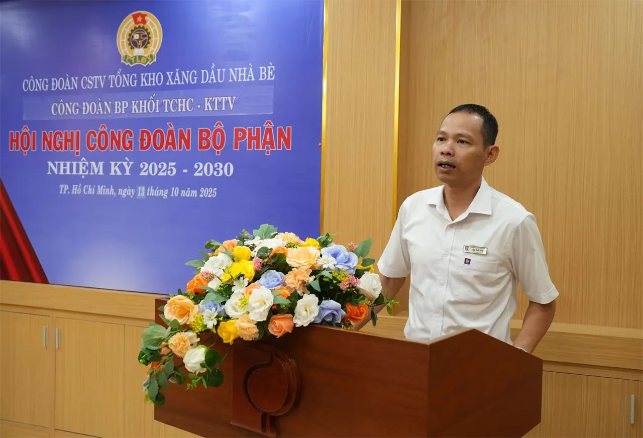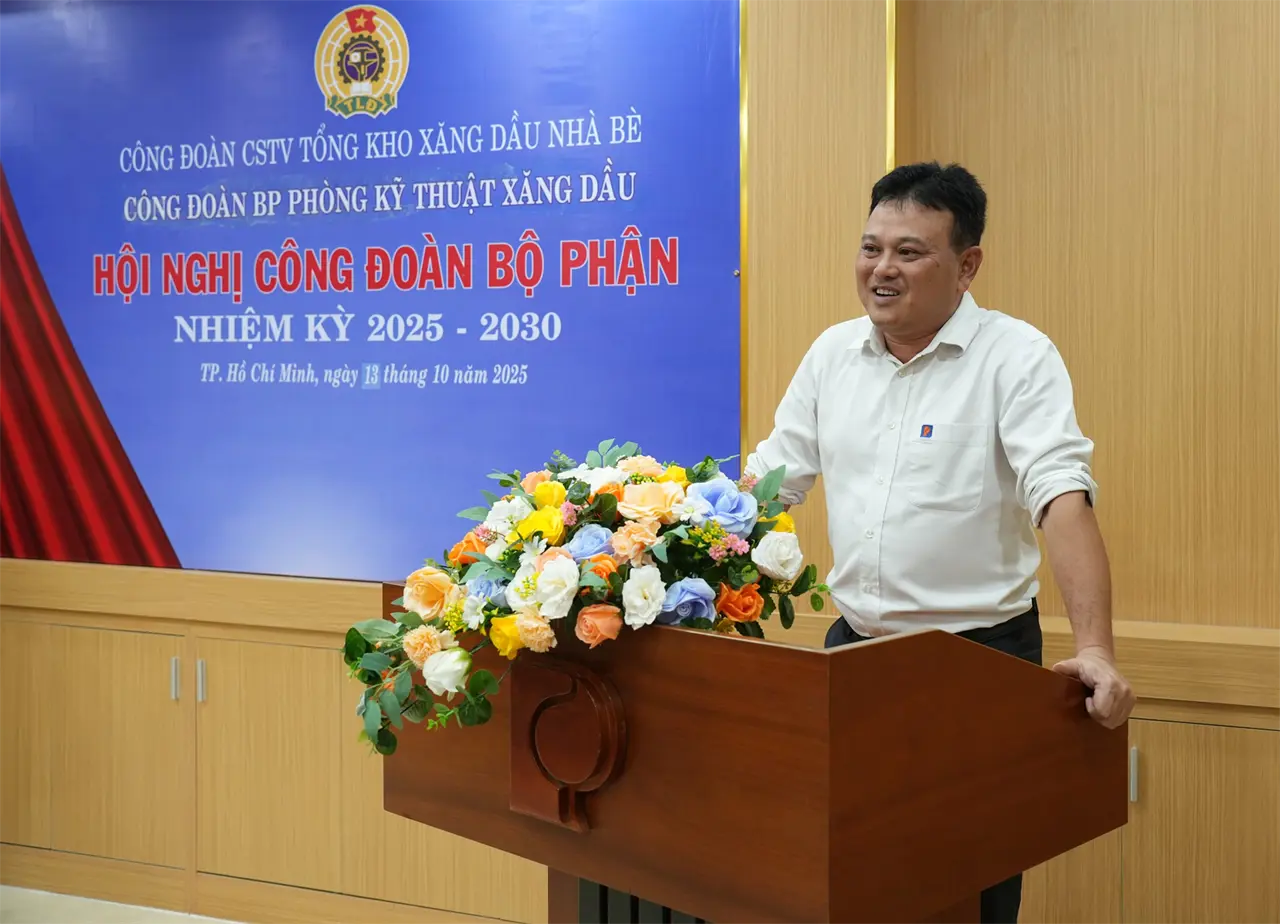 Thực hiện kế hoạch chỉ đạo của Công đoàn Xăng dầu Việt Nam và Công đoàn Công ty TNHH MTV Petrolimex Sài Gòn, từ ngày 10/10 đến 14/10/2025, tại Hội trường Tổng kho, 06/06 Công đoàn Bộ phận (CĐBP) trực thuộc Công đoàn CSTV Tổng kho Xăng dầu Nhà Bè (TKNB) đã tổ chức thành công Hội nghị Công đoàn Bộ phận nhiệm kỳ 2025 - 2030.