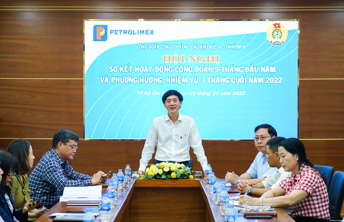 Sáng 26/10, Công đoàn Công ty Xăng dầu Xăng dầu Khu vực II tổ chức Hội nghị sơ kết hoạt động công đoàn 9 tháng đầu năm và triển khai nhiệm vụ 3 tháng cuối năm 2022. Phó giám đốc - Chủ tịch Công đoànCông ty Nguyễn Danh Hùng chủ trì hội nghị.