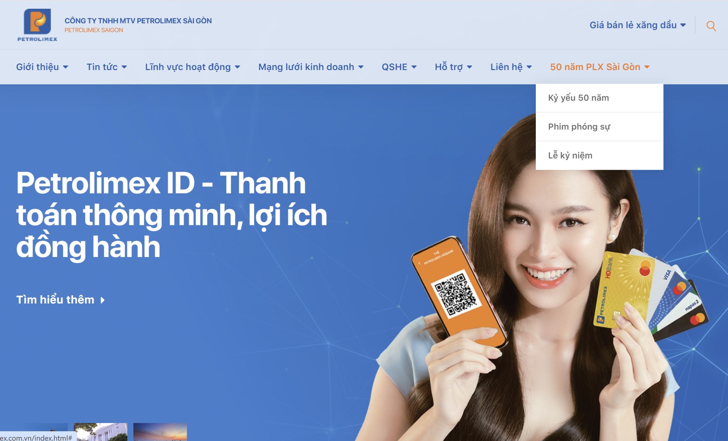 Hoặc truy cập từ menu trên Trang chủ của website Petrolimex Sài Gòn: