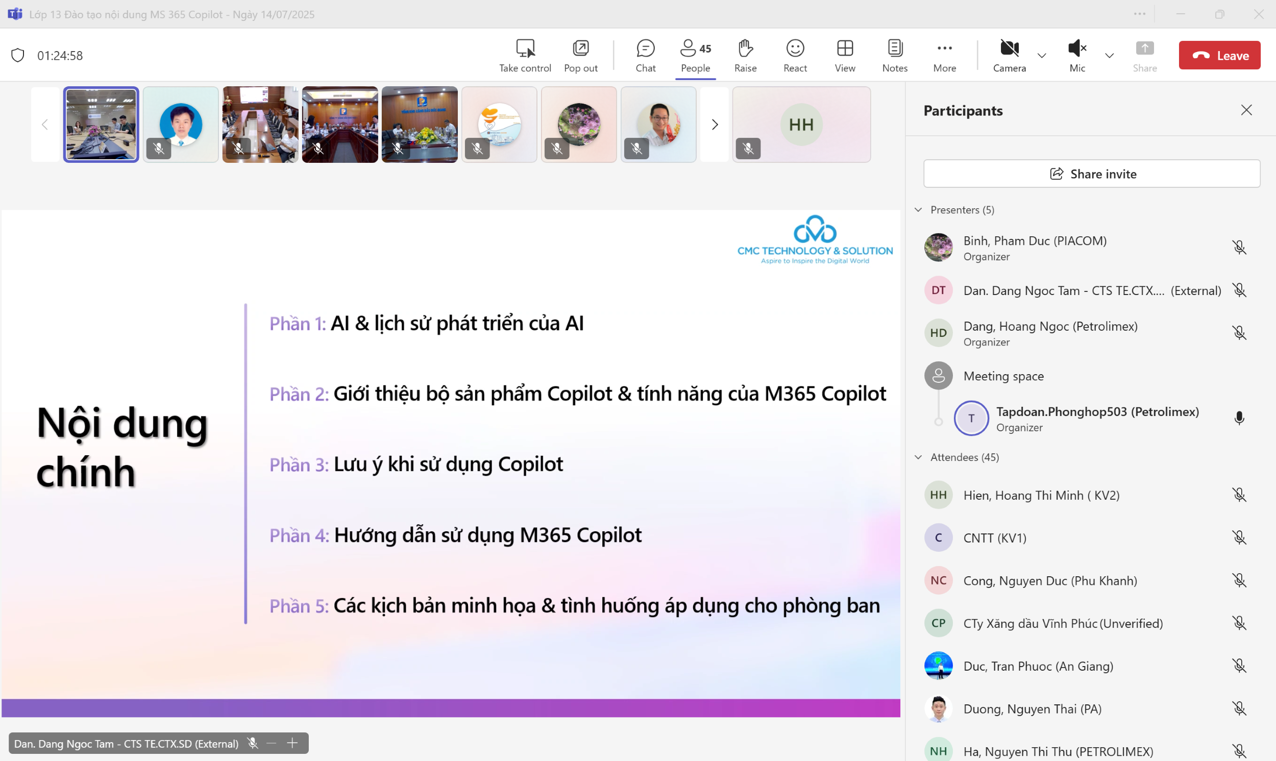 Đây là lớp học trực tuyến dành cho cán bộ các công ty thành viên thuộc Tập đoàn Xăng dầu Việt Nam theo Công văn số 1482/PLX-CNTT&CĐS. Chương trình học do Công ty Công nghệ và Giải pháp CMC (CMC) thiết kế, nhằm đào tạo chuyên sâu về khai thác và ứng dụng Microsoft 365 trong công việc.