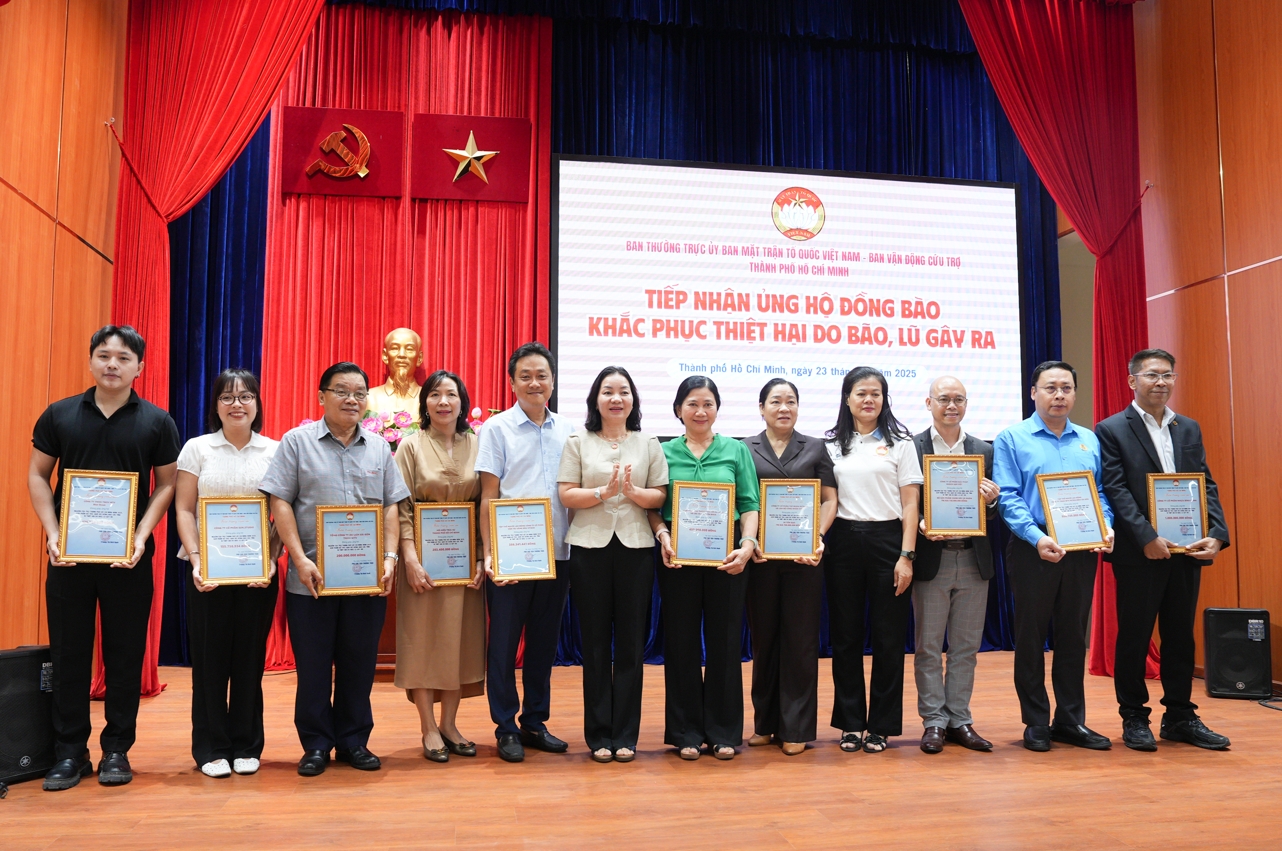 Sau khi phát động phong trào hỗ trợ người dân vùng bão lũ, Ban Vận động cứu trợ của MTTQ TP.HCM đã nhận được hơn 13.000 lượt quyên góp với tổng trị giá hơn 145 tỉ đồng, bao gồm 10.000 túi thuốc gia đình, 50 tấn gạo và nhiều hàng hóa thiết yếu. TP.HCM đã chuyển hơn 67 tỉ đồng hỗ trợ và tiếp tục phân bổ thêm 45 tỉ đồng để giúp các địa phương bị ảnh hưởng nặng nề khắc phục nhà cửa, trường học, đường sá, cũng như hỗ trợ trực tiếp cho người dân.