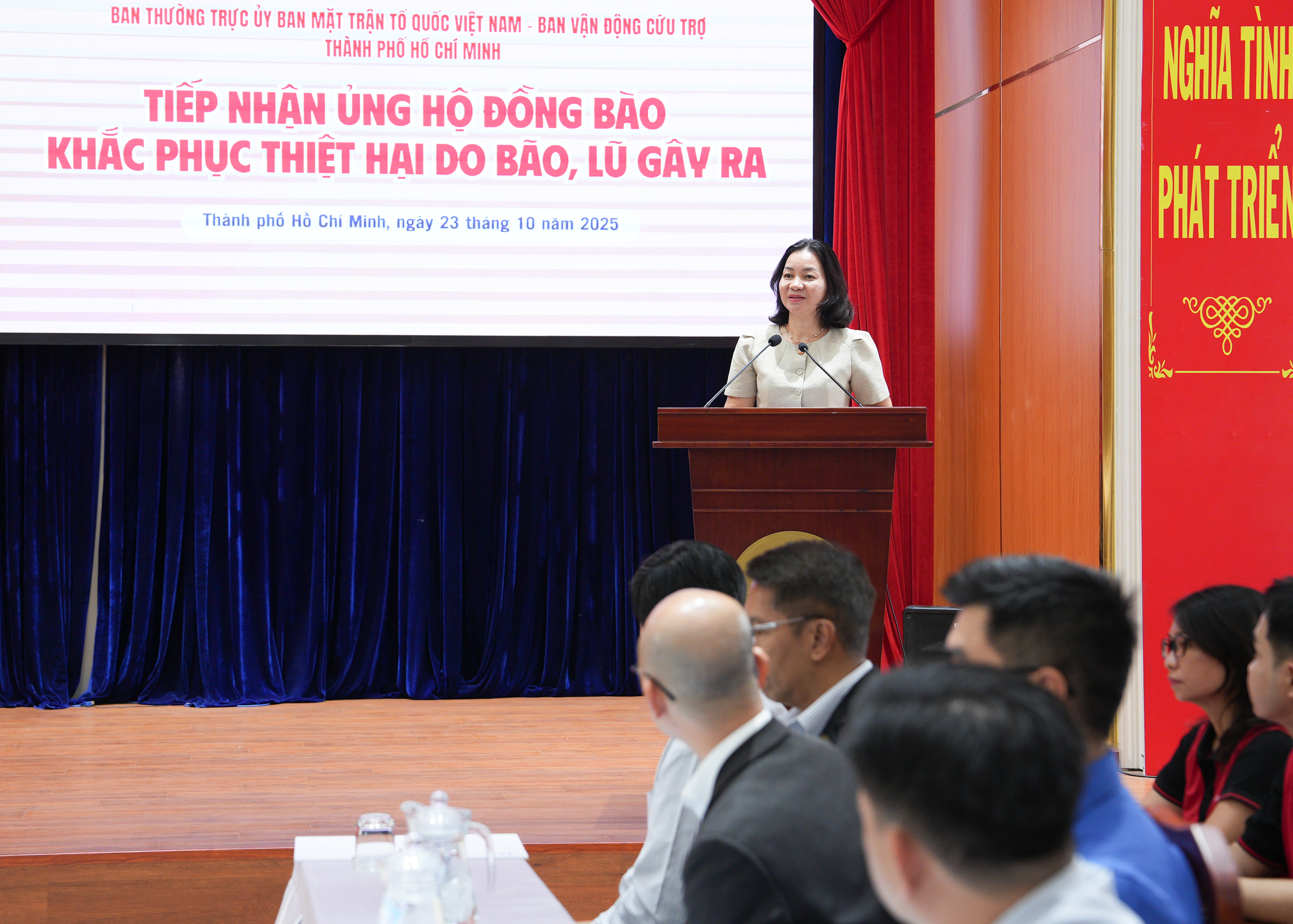 Phát biểu tại sự kiện, bà Trương Thị Bích Hạnh, Uỷ viên Ban thường vụ Thành uỷ, Phó chủ tịch Thường trực Ủy ban MTTQ Việt Nam TP.HCM, chia sẻ, trong 3 tháng qua, nhiều tỉnh miền Bắc và miền Trung đã phải hứng chịu liên tiếp các đợt bão lũ, gây thiệt hại nghiêm trọng về người và tài sản, ảnh hưởng lớn đến đời sống, giao thông và cơ sở hạ tầng.