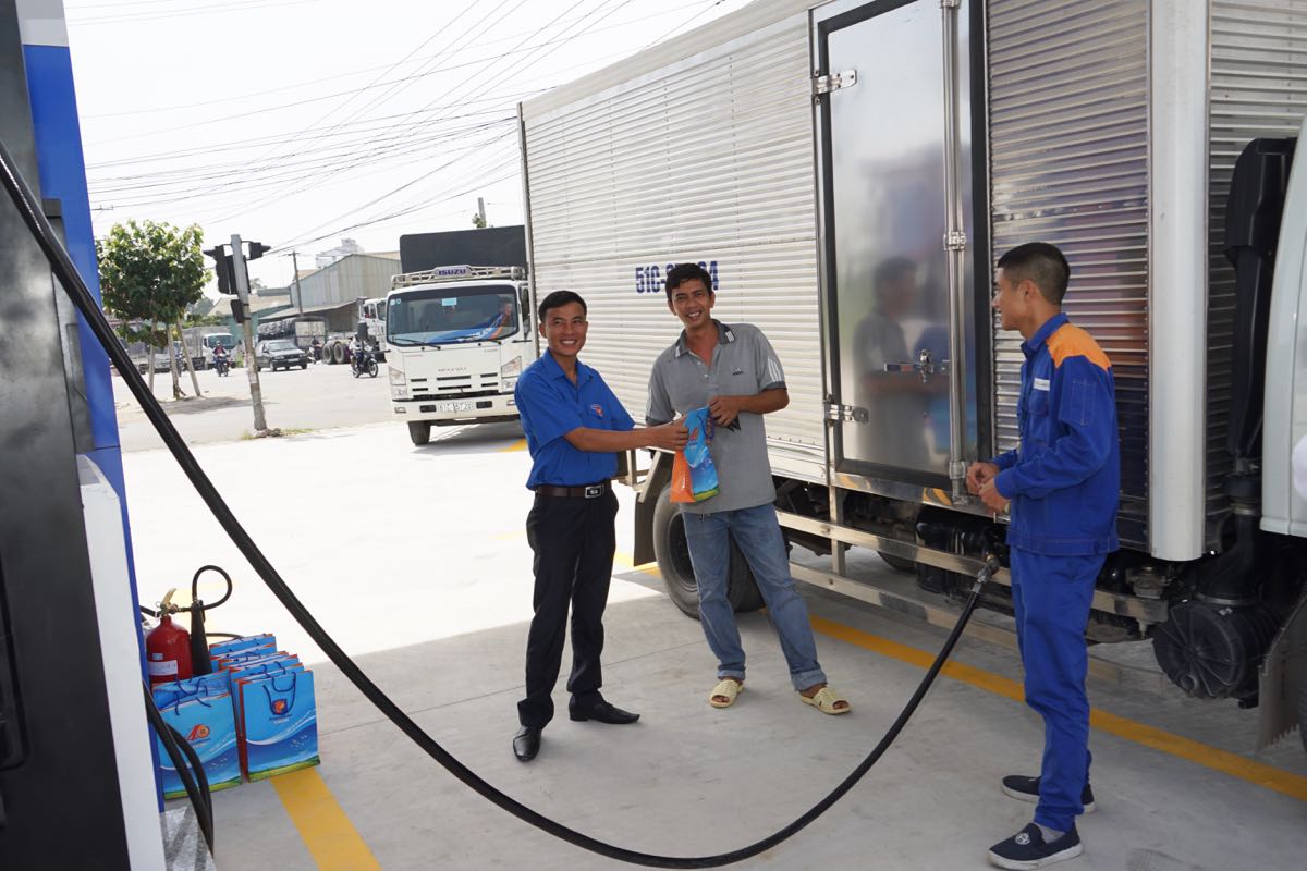 Trân trọng trao quà tặng những khách hàng đầu tiên đến tiếp nhiên liệu trong Ngày khai trương